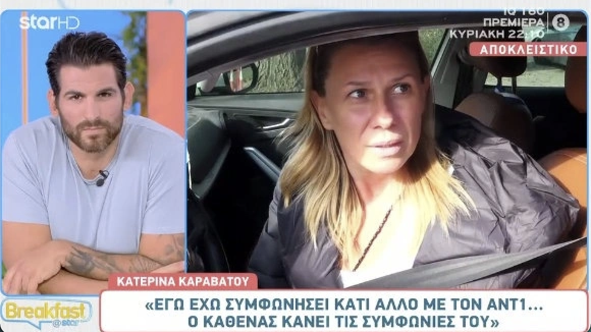 Εγώ έχω κάτι άλλο στο μυαλό μου, έχω συμφωνήσει κάτι άλλο με τον ΑΝΤ1, ο καθένας κάνει τις συμφωνίες του. Όσον αφορά το συμβόλαιό μου, είναι θέμα του δικηγόρου και του σταθμού», δήλωσε αρχικά η Κατερίνα Καραβάτου.