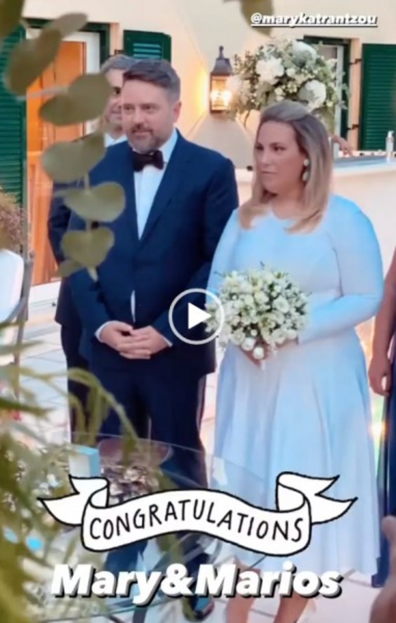 Ο παραμυθένιος γάμος του ερωτευμένου ζευγαριού έγινε χθες και η Μαίρη Καντράντζου σχεδίασε την ωραιότερη δημιουργία της ζωής της, φορώντας ως νυφικό ένα φόρεμα με αέρα 50s, μίνιμαλ σε λευκό χρώμα.