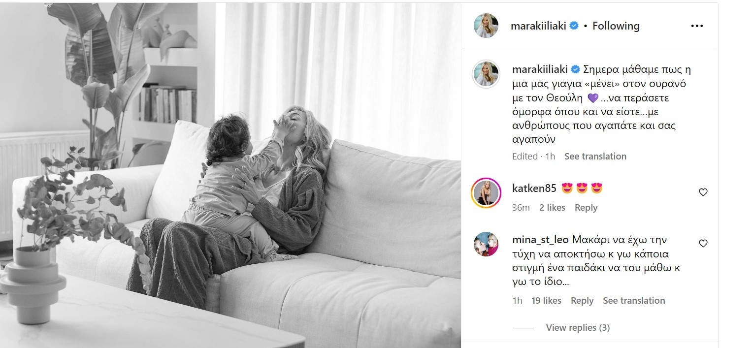 Συγκινεί η Ηλιάκη: «Σήμερα μάθαμε πως η μια μας γιαγιά «μένει» στον ουρανό»
