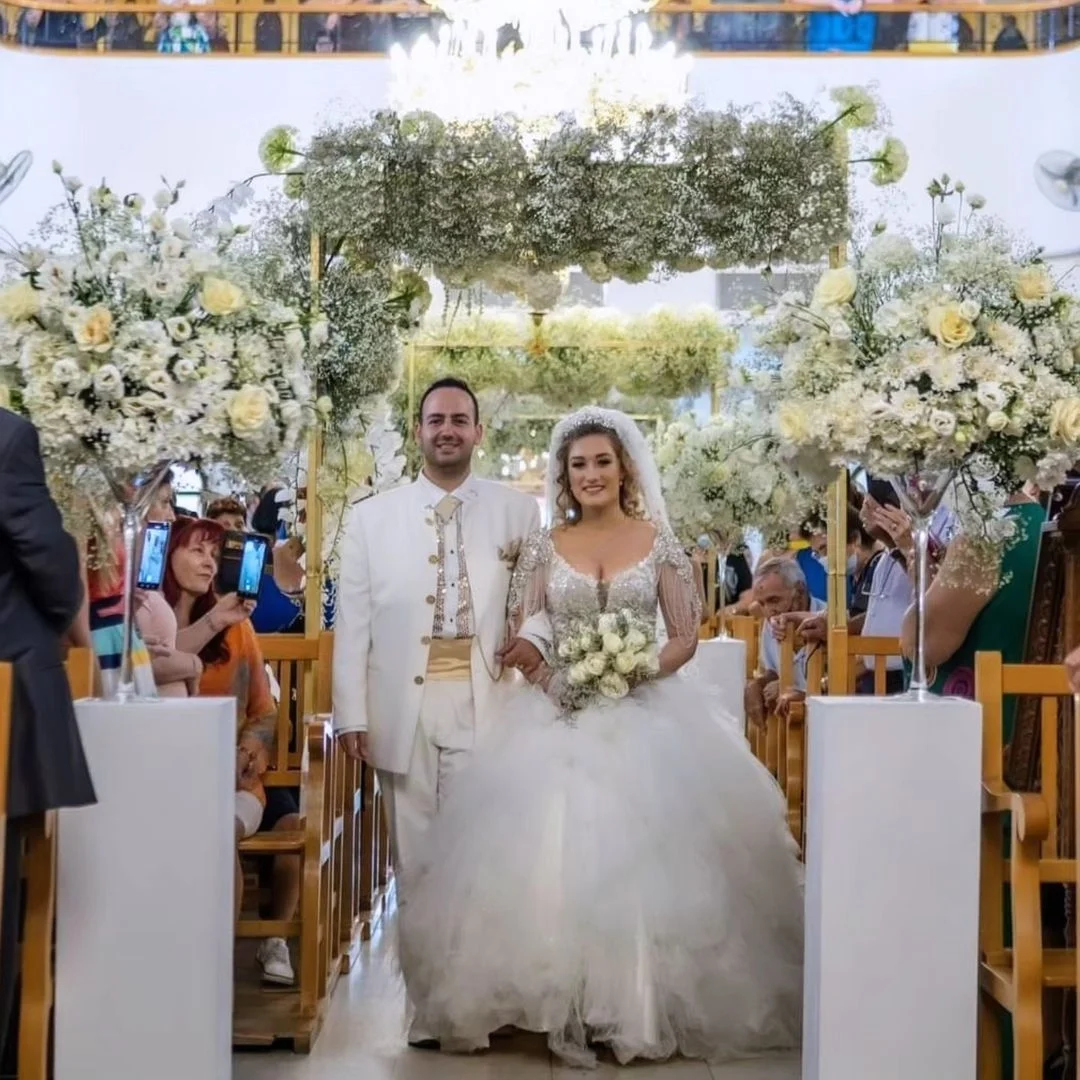 Λίγες ώρες αργότερα, το ζευγάρι γιόρτασε την επέτειό του αναβιώνοντας με νοσταλγία και ρομαντισμό τις σημαντικές στιγμές του γάμου τους. Η Ιλάειρα Ζήση, ντυμένη με εντυπωσιακό νυφικό, συνόδευσε τον σύζυγό της, Μαυρίκιο Μαυρικίου, ο οποίος επέλεξε να φορέσει γαμπριάτικο κοστούμι για την ιδιαίτερη τελετή της επετείου. Η γιορτή, που πραγματοποιήθηκε στη Λεμεσό, ήταν μια αναπαράσταση της μαγικής ατμόσφαιρας της ημέρας του γάμου τους, επιβεβαιώνοντας τη συνεχιζόμενη αγάπη και αφοσίωσή τους ο ένας στον άλλο.