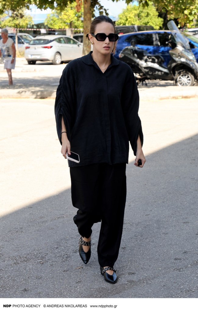 Όσο για τη Μαρία Βοσκοπούλου, φόρεσε και εκείνη μαύρα ρούχα ενώ σε αντίθεση με τις γόβες στιλέτο της μητέρας της, εκείνη προτίμησε ένα ζευγάρι μαύρες μπαλαρίνες.