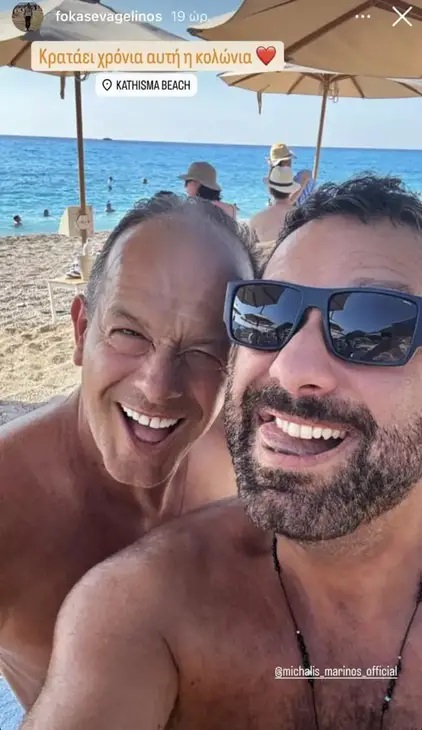 Μάλιστα το μεσημέρι της Κυριακής, ο Φωκάς Ευαγγελινός κοινοποίησε μια φωτογραφία στον προσωπικό του λογαριασμό στο Instagram από τις διακοπές του, στην οποία ποζάρει μαζί με τον Μιχάλη Μαρίνο. Ενώ στην λεζάντα έγραψε χαρακτηριστικά “Κρατάει χρόνια αυτή η κολόνια”