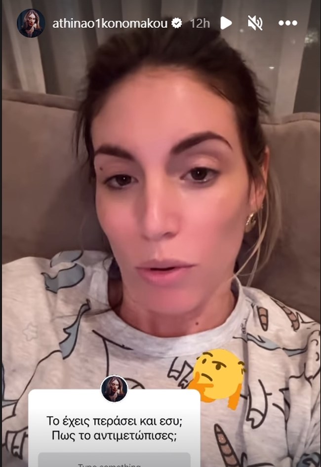 Στη φωτογραφία που δημοσίευσε η Αθηνά Οικονομάκου, την είδαμε με το πόδι της σε έκταση με πάγο ως θεραπεία.