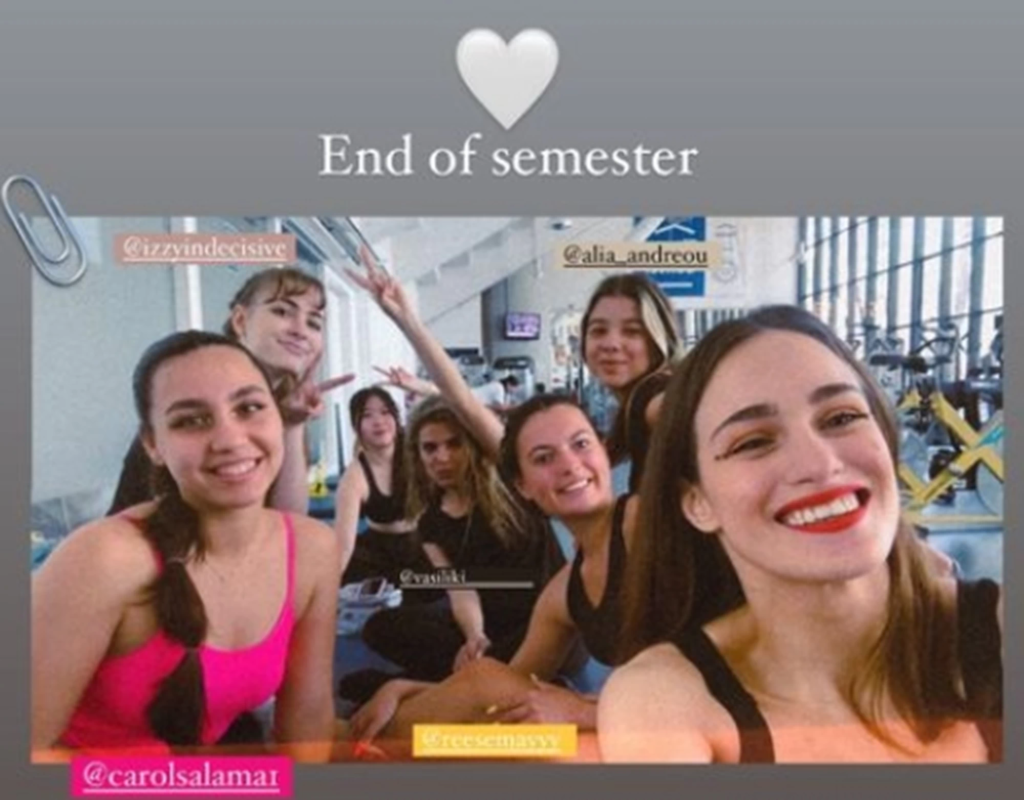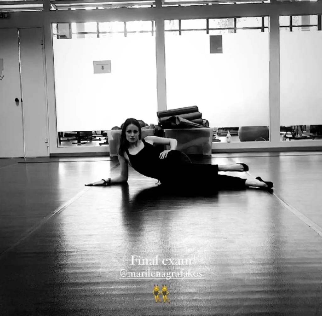 Η ίδια δημοσίευσε στιγμιότυπα από τις εξετάσεις στον χορό, όπου την είδαμε να φοράει μαύρο κορμάκι και φόρμα, να έχει έντονο μακιγιάζ και να χορεύει ένα απόσπασμα από το μιούζικαλ “Cabaret”.