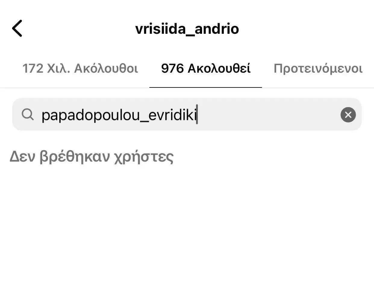 Τεταμένες ήταν τον τελευταίο καιρό οι σχέσεις ανάμεσα στην Βρισηίδα Ανδριώτου και στην Ευρυδίκη Παπαδοπούλου μετά και την επίθεση που εξαπέλυσε η Ευριδίκη προς τον σύντροφο της Βρισηίδας, Σπύρο Μαρτίκα. Έτσι ήρθε και το unfollow της Βρισηίδας προς την Ευριδίκη για να βάλει έναν επίλογο στην φιλία τους.
