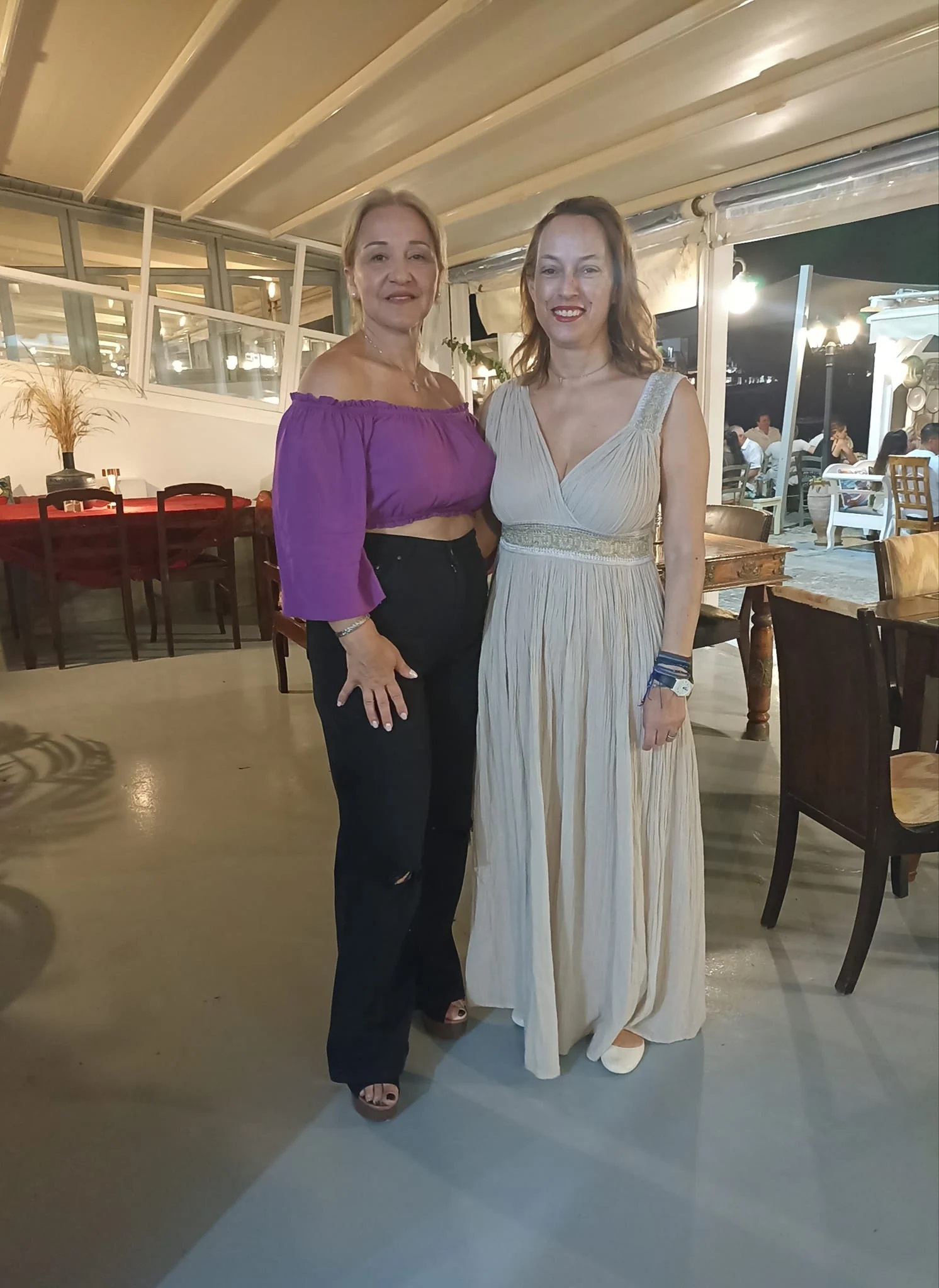 Και δημοσίευσε μια σειρά φωτογραφιών στον προσωπικό της λογαριασμό στο facebook ποζάροντας και μαζί με μια φίλη της ενώ έγραψε: «Με την μητέρα της βαφτιστήρας μου , την αδερφή κ φίλη μου Μαρία Παντουβάκη είχαμε να κάνουμε μαζί διακοπές χρόνια!!! Ωστόσο η θλίψη μας για τις καταστροφικές πυρκαγιές είναι βαθιά. Ευχόμαστε να μην θρηνήσουμε ζωές!!! Κ όταν γυρίσουμε να μη συνεχίζεται το καλό!!! Σας στέλνω την αγάπη μου. Καλή δύναμη σε όλους!!».