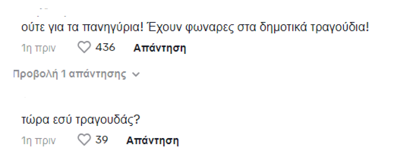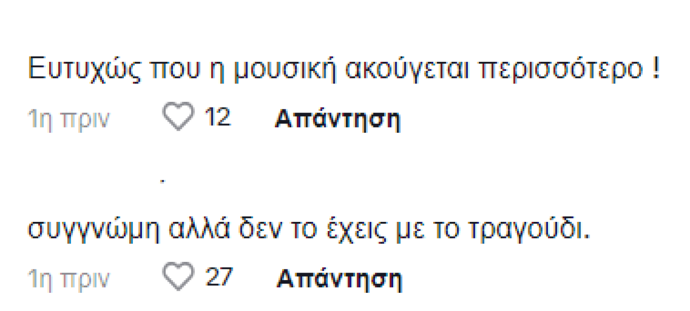 «Ευτυχώς που η μουσική ακούγεται περισσότερο», προσθέτει ένας άλλος.