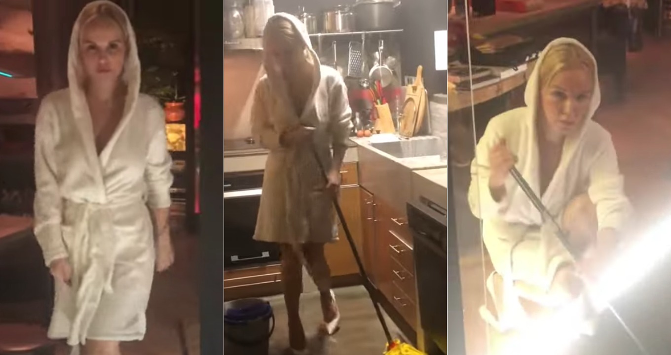 Η Νατάσα Καλογρίδη φορώντας λευκή ρόμπα και λευκές γόβες και κάνοντας “δουλειές” στο σπίτι της αποφάσισε να στείλει ένα μήνυμα αναφορικά με τις τελευταίες εξελίξεις σε θέματα περί κακοποίησης και σεξουαλικής παρενόχλησης.
