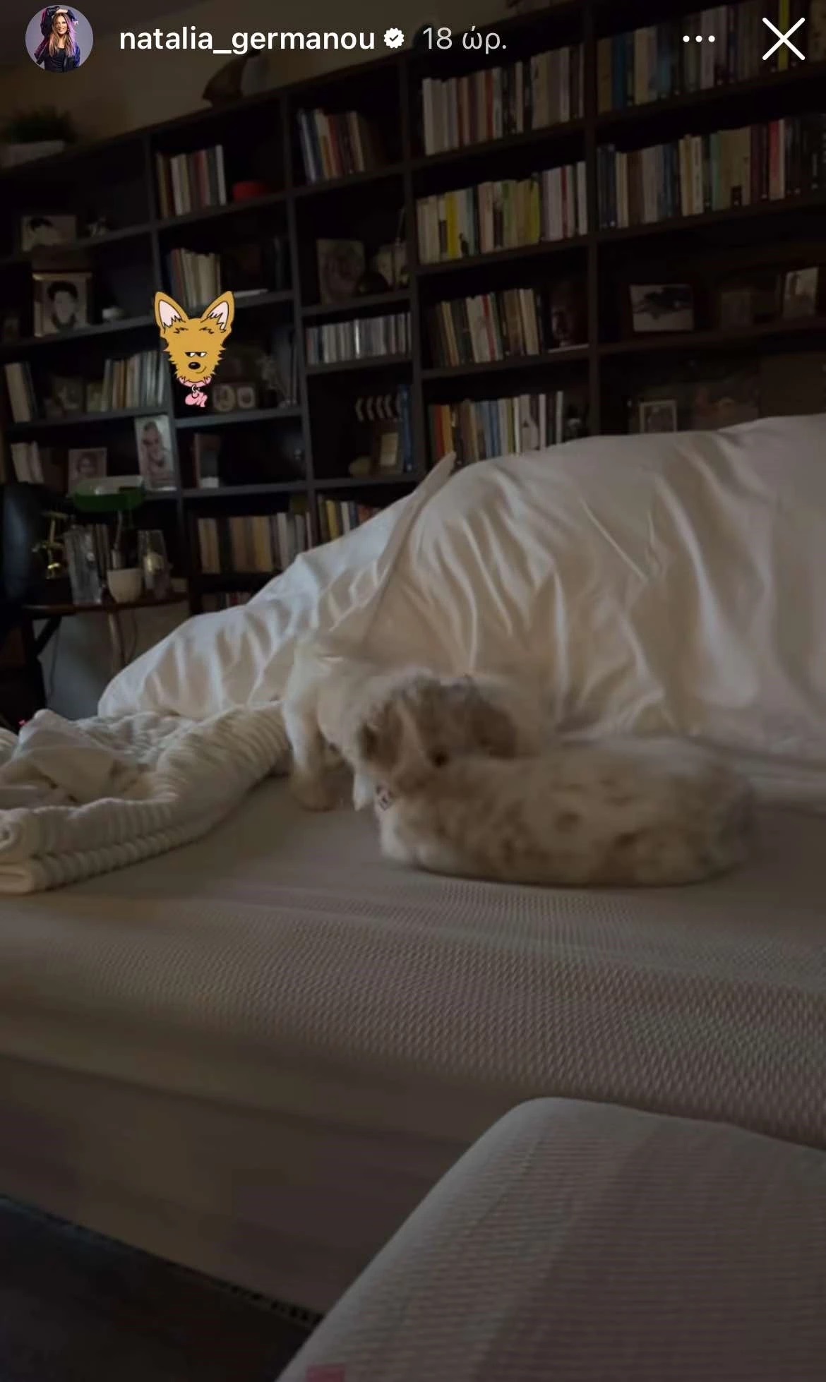 Η Ναταλία Γερμανού αποφάσισε να μοιραστεί ένα στιγμιότυπο από το σαλόνι του σπιτιού της όπου τα σκυλάκια της παίζουν πάνω στον καναπέ. Το δωμάτιο έχει κλασική διακόσμηση με μια βαριά ξύλινη βιβλιοθήκη και φωτογραφίες των γονιών της στα ράφια. Από την άλλη πλευρά, η Εριέττα Μαυρουδή εμφανίστηκε σε ένα βίντεο στο The Secret Song, εκφράζοντας την υπερηφάνειά της για τη Ναταλία. Η Ναταλία δεν μπορούσε να κρύψει τη συγκίνησή της βλέποντας τη μητέρα της να κρατάει χαμηλό προφίλ και να αποφεύγει τα φώτα της δημοσιότητας.