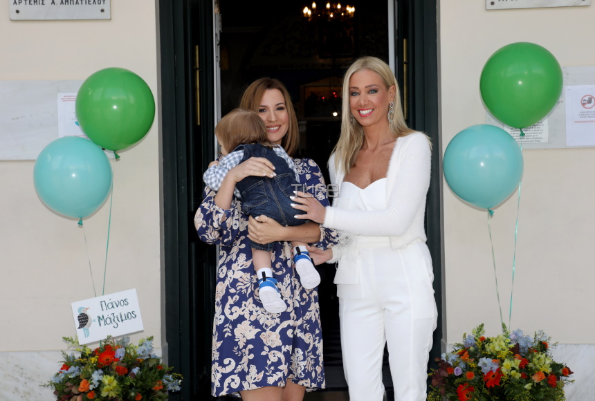 Μάλιστα, νονά ήταν η δημοσιογράφος και καλή φίλη της Νίκης Λυμπεράκη, Έφη Αλεβιζού. Η ευτυχισμένη μανούλα έλαμπε μέσα στο μπλε φλοράλ φόρεμα που επέλεξε να φορέσει για τη βάφτιση του μονάκριβου γιου της.