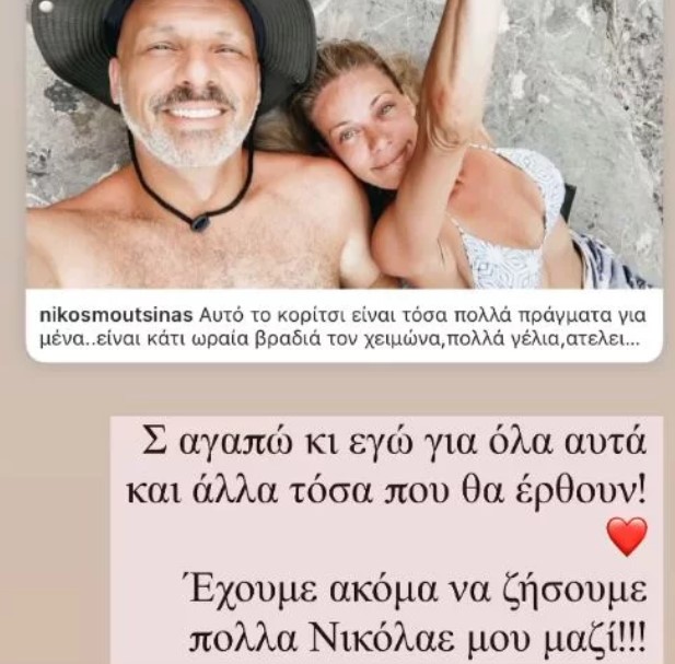 Tην ανάρτηση του Νίκου Μουτσινά έκανε story στο Instagram η Ζέτα Μακρυπούλια, στέλνοντας και εκείνη με τη σειρά της το δικό της μήνυμα. «Σε αγαπώ κι εγώ για όλα αυτά και άλλα τόσα που θα έρθουν! Έχουμε ακόμα να ζήσουμε πολλά Νικόλα μου, μαζί».