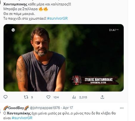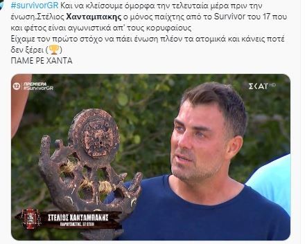 Να σημειωθεί μάλιστα πως o Στέλιος Χανταμπάκης δέχθηκε άσχημη κριτική στην αρχή του ριαλιτι για το σώμα του και τα κιλά του και έχει καταφέρει να γίνει ο Survivor της απώλειας βάρους.