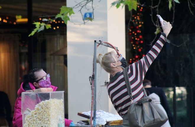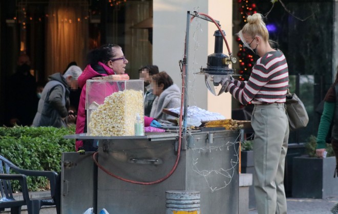 Όπως θα δείτε, η Φαίη Σκορδά φαινόταν ιδιαίτερα ευδιάθετη και ο φωτογραφικός φακός την απαθανάτισε μάλιστα τη στιγμή που αγόραζε πασατέμπο από πλανόδια πωλήτρια.