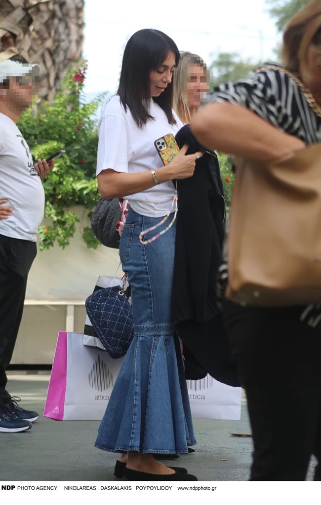 Η Χοψονίδου έχει φορέσει ξανά ανάλογο παντελόνι σε τζιν, από τον ίδιο σχεδιαστή. Τότε το είχε συνδυάσει με μπαλαρίνες.