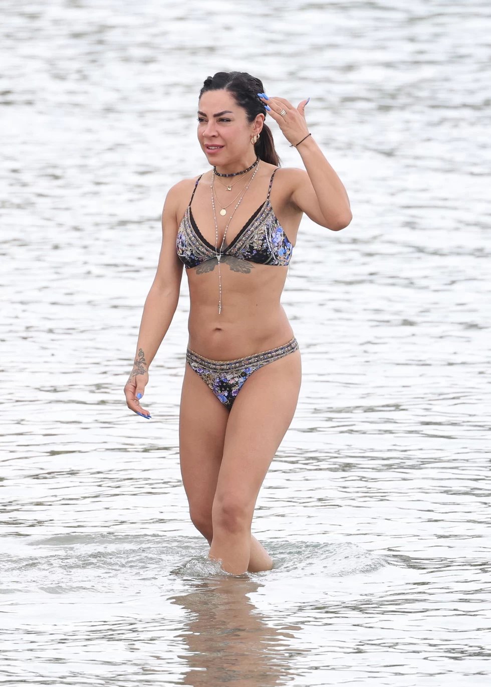 Σε μια τέτοια της επίσκεψη την εντόπισε και μαζί ο φωτογραφικός φακός με την τραγουδίστρια να απολαμβάνει το μπάνιο της στη Βουλιαγμένη. Ενώ την παράσταση έκλεψε τόσο το υπέροχο σώμα της αλλά και η επιλογή του μαγιό της. Πιο συγκεκριμένα φόρεσε ένα εμπριμέ μπικίνι σε μαύρους και μπλε τόνους, από τη νέα swimwear συλλογή του brand. Camilla. Το συγκεκριμένο brand είναι αρκετά δημοφιλές στους εγχώριους celebrities ενώ πρόσφατα και η Μαριάννα Λάτση αλλά και η Τατιάνα Στεφανίδου επέλεξαν το συγκεκριμένο brand σε βράδυνες εξόδους τους. Το συγκεκριμένο μαγιό κοστίζει κοντά στα 320 ευρώ με την έκπτωση. Με το top στα 178 ευρώ και το κάτω μέρος στα 145 ευρώ.