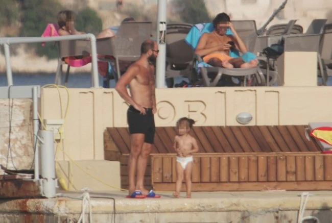 Το ζευγάρι απόλαυσε οικογενειακώς τις βουτιές του με τον μπασκετμπολίστα να εντυπωσιάζει με τους κοιλιακούς του και το μαύρισμά του.