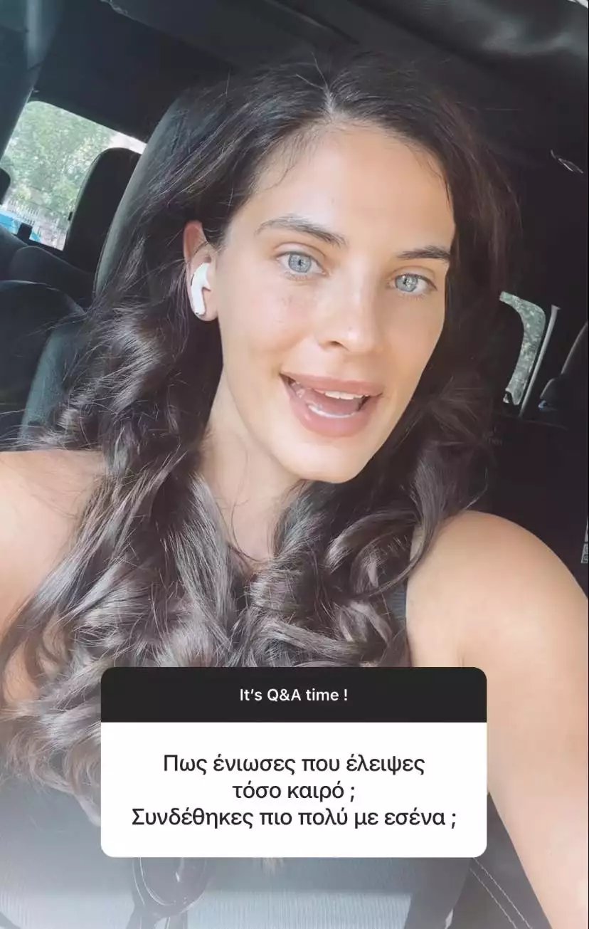 Αν η ερώτηση υποκινείται από το break που έκανα από τα social media, πολλές φορές θέλεις να κάνεις κάτι για τον εαυτό σου, όπως είπα και όχι για το ότι είσαι έγκυος ή για κάποιον άλλον εξωτερικό παράγοντα. Δεν είμαι έγκυος, απλά έφαγα και ήθελα να ξεκουραστώ».