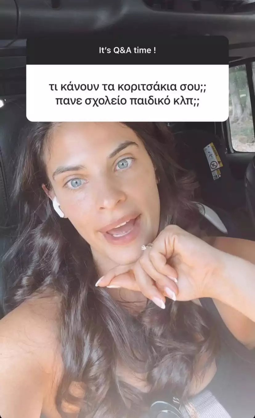 Αναφερόμενη στις δίδυμες κόρες της, Αριάνα και Φιλίππα, απάντησε στο αν ξεκίνησαν φέτος το σχολείο, λέγοντας: «Όχι ακόμα δεν τις πήγαμε, αποφασίσαμε να τις πάμε του χρόνου, άρα έχουμε ακόμα καιρό για αυτή την πίστα. Όταν έρθει θα σας ρωτήσω εσάς τις έμπειρες μαμάδες να μου πείτε συμβουλές».
