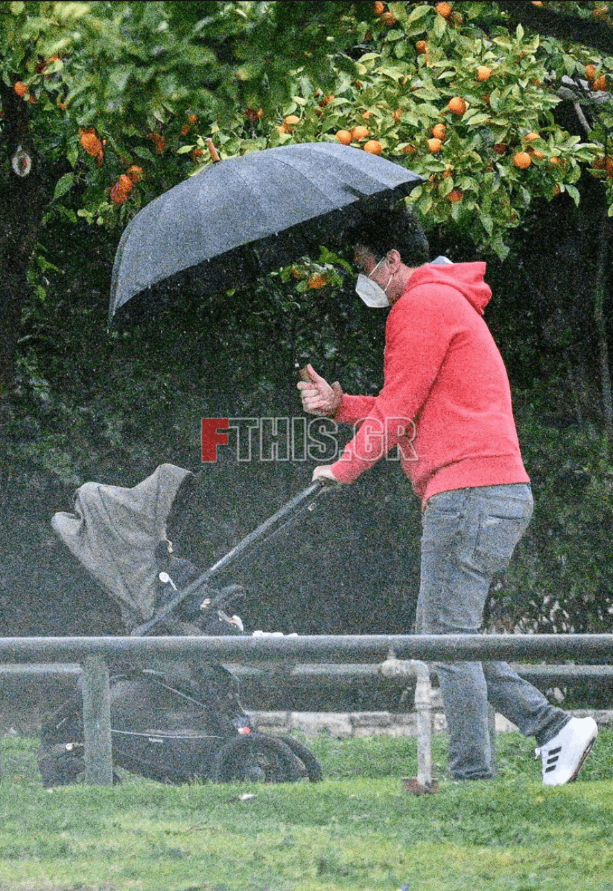 Παρά το βροχερό καιρό ο Βασίλης Κικίλιας και ο μικρός Παναγιώτης Αντώνιος δεν δίσταζαν να βγουν την καθιερωμένη τους βόλτα στο Ζάπειο.