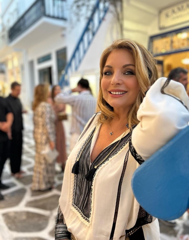 Η Άντζελα Γκερέκου και πρόεδρος του ΕΟΤ βρέθηκε στη Μύκονο και έκλεψε την παράσταση για ακόμα μια φορά με την εμφάνισή της. Η ηθοποιός που την απολαύσαμε και στην αγαπημένη σειρά “γη της ελιάς” είναι ιδιαίτερα ενεργή στα social media και ανέβασε στον λογαριασμό της στο Instagram φωτογραφίες από την επίσκεψη της στο νησί συνδυάζοντας την βόλτα της και με μια εντυπωσιακή εμφάνιση. Η ίδια επέλεξε ένα μαύρο παντελόνι και ολοκλήρωσε το στυλ με χρυσαφί ζώνη με grecian στοιχεία. Ενώ και επέλεξε και μια μπλούζα σε ασπρόμαυρους τόνους και σε bohemian ύφος η οποία έδωσε ένα boho χαρακτήρα. Η συγκεκριμένη μπλούζα κοστίζει 498 ευρώ.