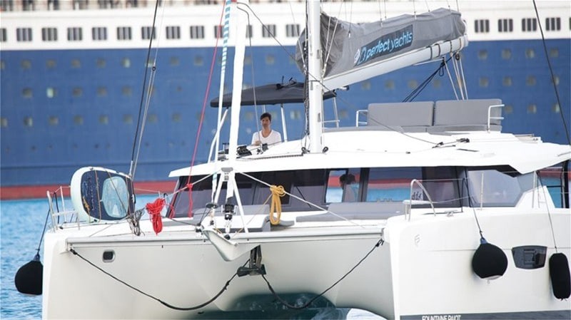 Το καταμαράν είναι λευκό και τεράστιο, ενώ διαθέτει και όλα τα κομφόρ που έχει και ένα σπίτι, κουζίνα, μπάνιο, σαλόνι και δωμάτια.