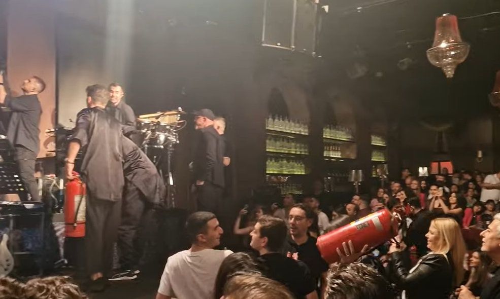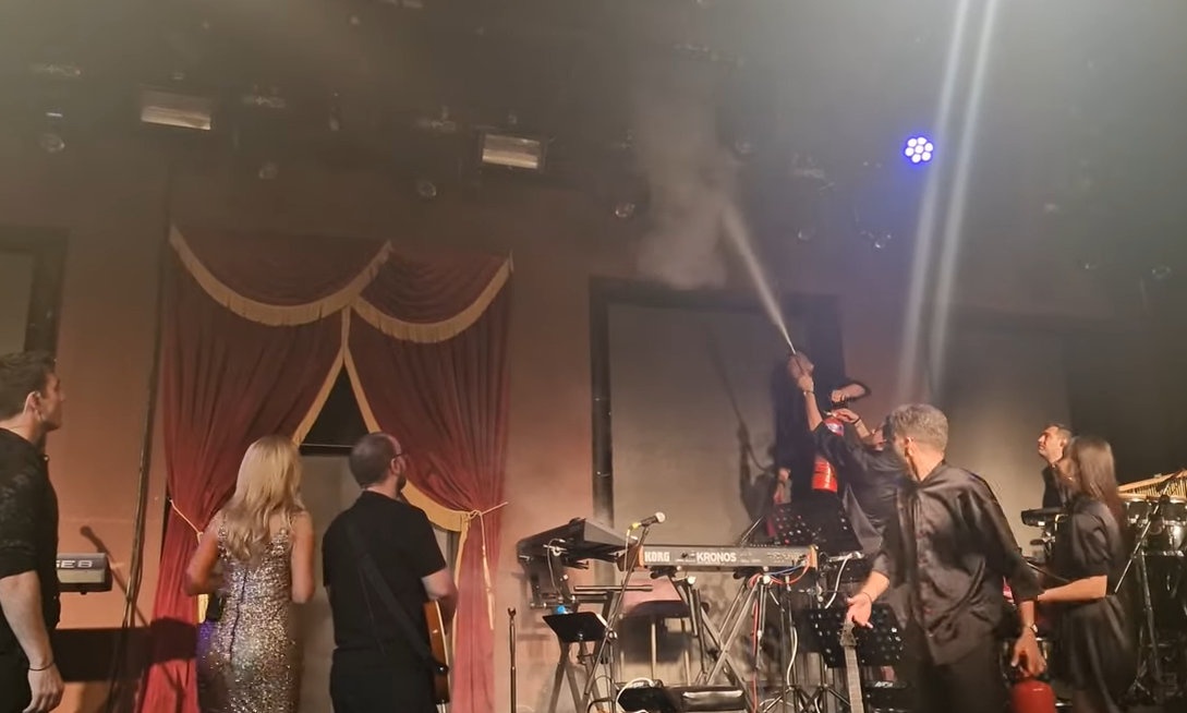 Επικράτησε ψυχραιμία με την Νατάσα Θεοδωρίδου να ζητάει από τους μουσικούς να απομακρυνθούν και το προσωπικό του μαγαζιού να τρέχει άμεσα με πυροσβεστήρες και να σβήνει την εστία της φωτιάς πριν αυτή επεκταθεί. Η φωτιά έσβησε άμεσα με την βοήθεια του προσωπικού ωστόσο ο καπνός ήταν έντονος για αρκετή ώρα με την Νατάσα Θεοδωρίδου και τον Γιώργο Κακοσαίο να χρειάζονται ένα διάλλειμα να πιούν νερό και να πάρουν μερικές ανάσες.