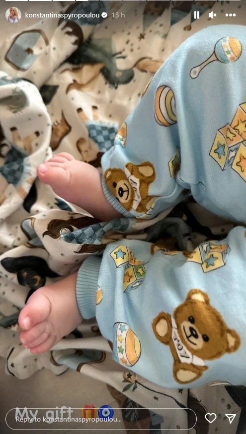 Η Κωνσταντίνα Σπυροπούλου ευχαρίστησε όλους τους φίλους της για τις ευχές αλλά δημοσίευσε και μια τρυφερή φωτογραφία με τον γιό της και συγκίνησε τους φανς της καθώς στην φωτογραφία ήταν τα μικρά πατουσάκια του μπέμπη και έγραψε “Το δώρο μου”.