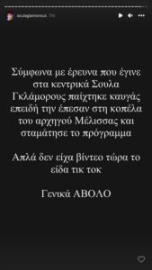 Η Soula Glamorous δημοσιεύει και συνομιλία της όπου λέγεται ότι πρόκειται για τον Πεπ Μπίελ, τον Ισπανό παίκτη του Ολυμπιακού.