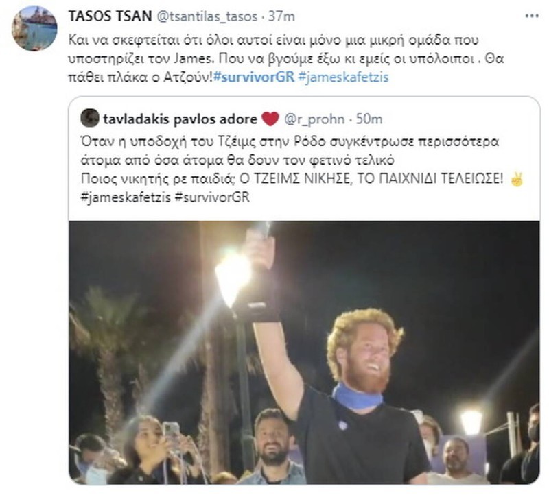 Όπως ήταν φυσικό επόμενο στο Twitter με το που δημοσιεύθηκαν τα πρώτα βίντεο από τον χαμό που επικρατούσε στο νησί, έγινε πραγματικός χαμός με tweets που τον αποθέωναν και τον έλεγαν νικητή του Survivor 4.