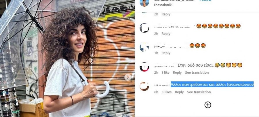 η Σολωμού δέχτηκε και επικά σχόλια για τον γάμο του πρώην της, με χαρακτηριστικότερο το σχόλιο:«Άλλοι παντρεύονται και άλλοι ξανανοιώνουν»!