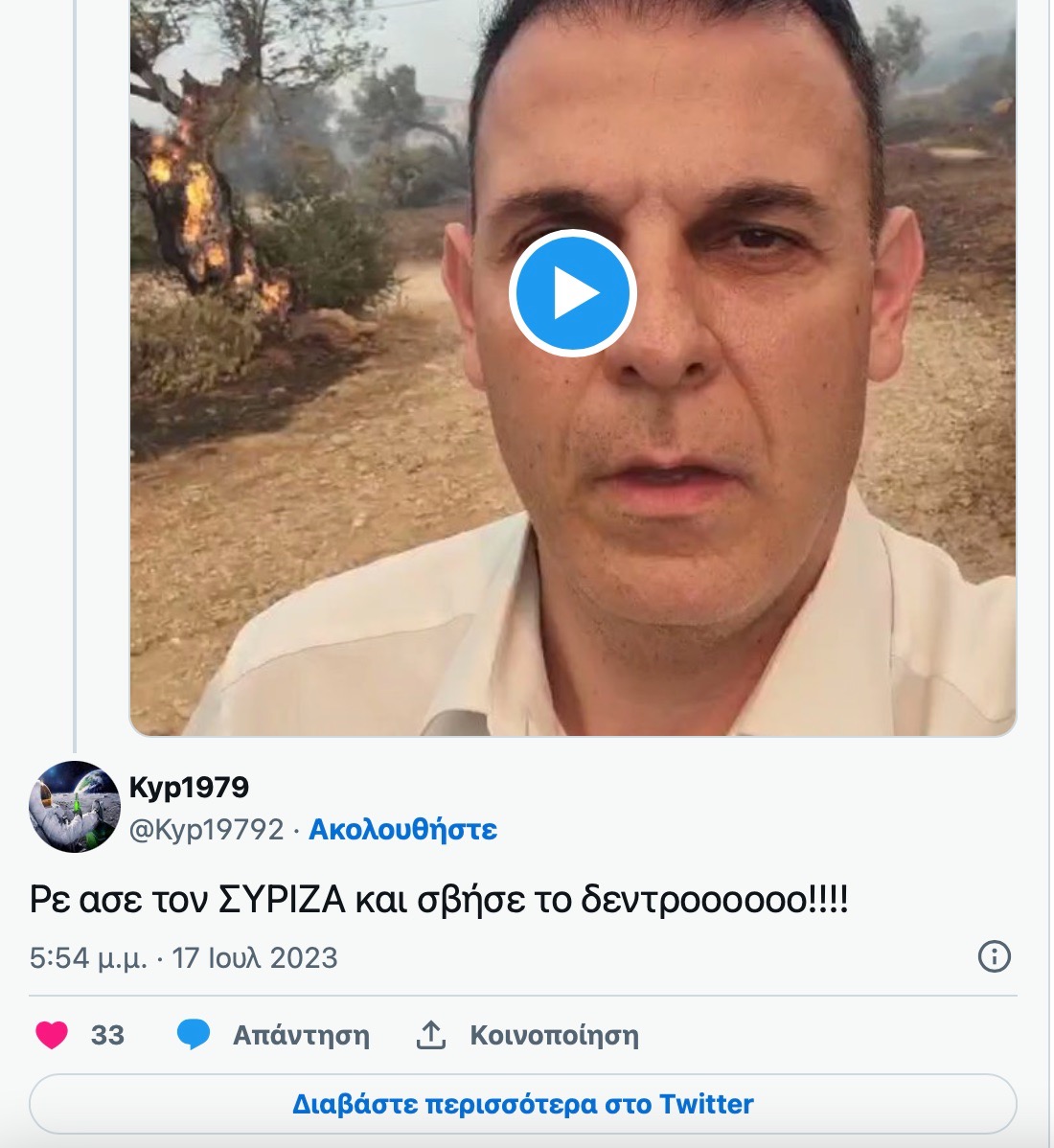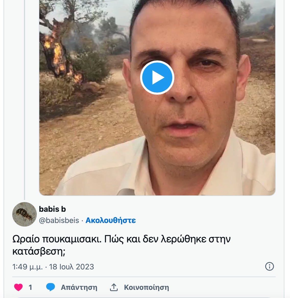 Ένα βίντεο που δημοσίευσε ο βουλευτής του ΣΥΡΙΖΑ, Γιώργος Καραμέρος, με ένα φλεγόμενο δέντρο ως φόντο, έχει προκαλέσει μια μεγάλη αναταραχή στο Twitter.