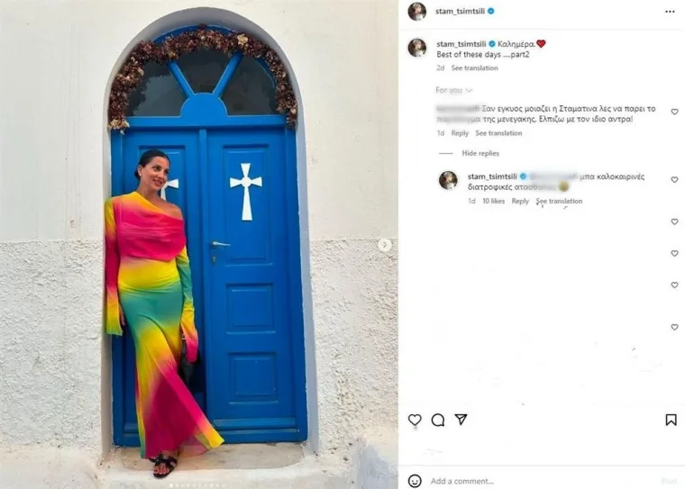 Η Σταματίνα Τσιμτσιλή ανέβασε μια ανάρτηση στον προσωπικό της λογαριασμό στο Instagram, και ένας από τους ακολούθους της παρατήρησε τη φουσκωμένη της κοιλίτσα!
