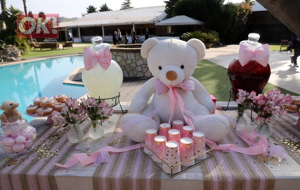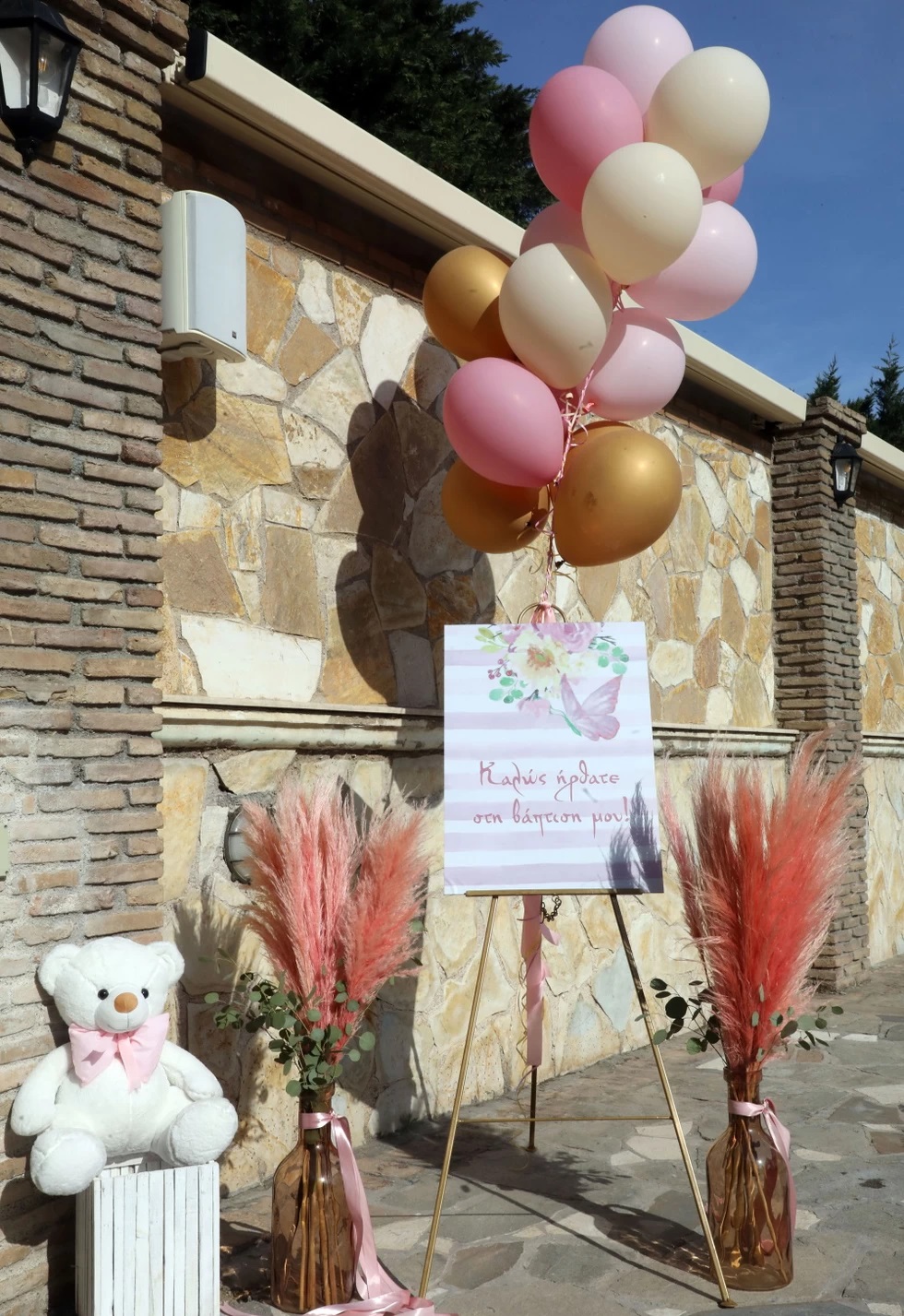 Στη διακόσμηση κυριάρχησαν τα ροζ χρώματα με τα μπαλόνια και τους αρκούδους να κυριαρχούν στον χώρο.