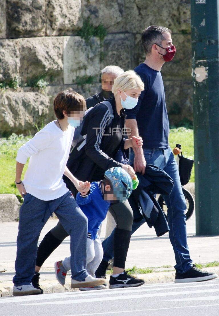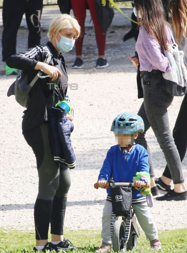 Αυτή τη φορά, ο φωτογραφικός φακός τους απαθανάτισε κατά την έξοδό τους στον Εθνικό Κήπο. Ο Δήμος έκανε ποδήλατο και υπερήφανη μαμά τον καμάρωνε και τον φωτογράφιζε. Στη συνέχεια, στην παρέα τους προστέθηκε ο Κώστας Μπακογιάννης μαζί με τον γιο του, Παύλο. Αφού απόλαυσαν το ηλιόλουστο καιρό, όλοι μαζί πήραν τον δρόμο της επιστροφής.