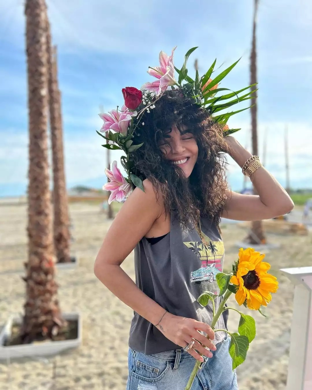 Δούκισσα Νομικού: Σίγουρα Άνοιξη και Δούκισσα Νομικού μας ακούγονται ταιριαστά και μας χάρισε μια πόζα με το στεφάνι στα μαλλιά της