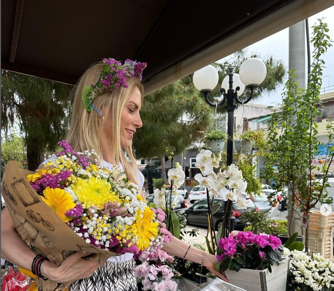 Και η Μαρία Σολωμού ποζάρει με υπέροχη λουλούδινη διάθεση