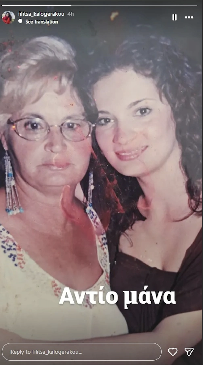 «Αντίο μαμά», έγραψε λακωνικά η Φιλίτσα Καλογεράκου σε ανάρτησή της στο Instagram, δημοσιεύοντας μία φωτογραφία τους, όπου αποτυπώνεται η μεγάλη ομοιότητά.