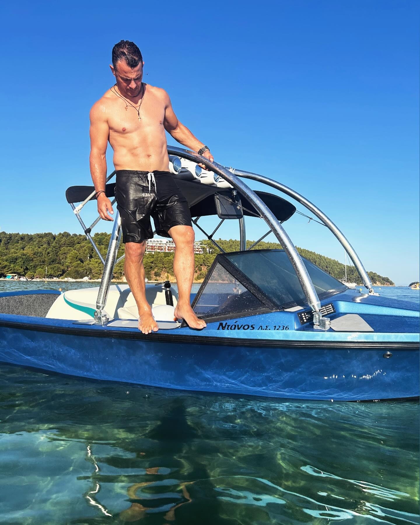 Μία από τις φωτογραφίες είναι από το 2016, όπου ο Ντάνος απεικονίζεται στην παραλία με κοντά μαλλιά και μόνο το μαγιό του.