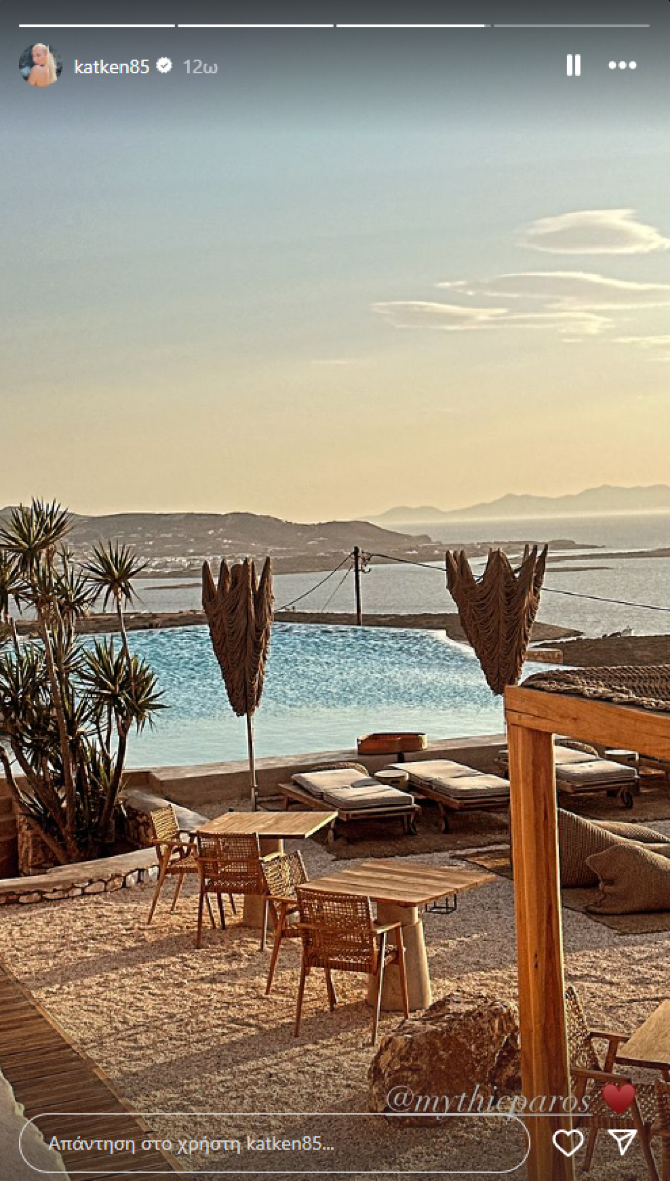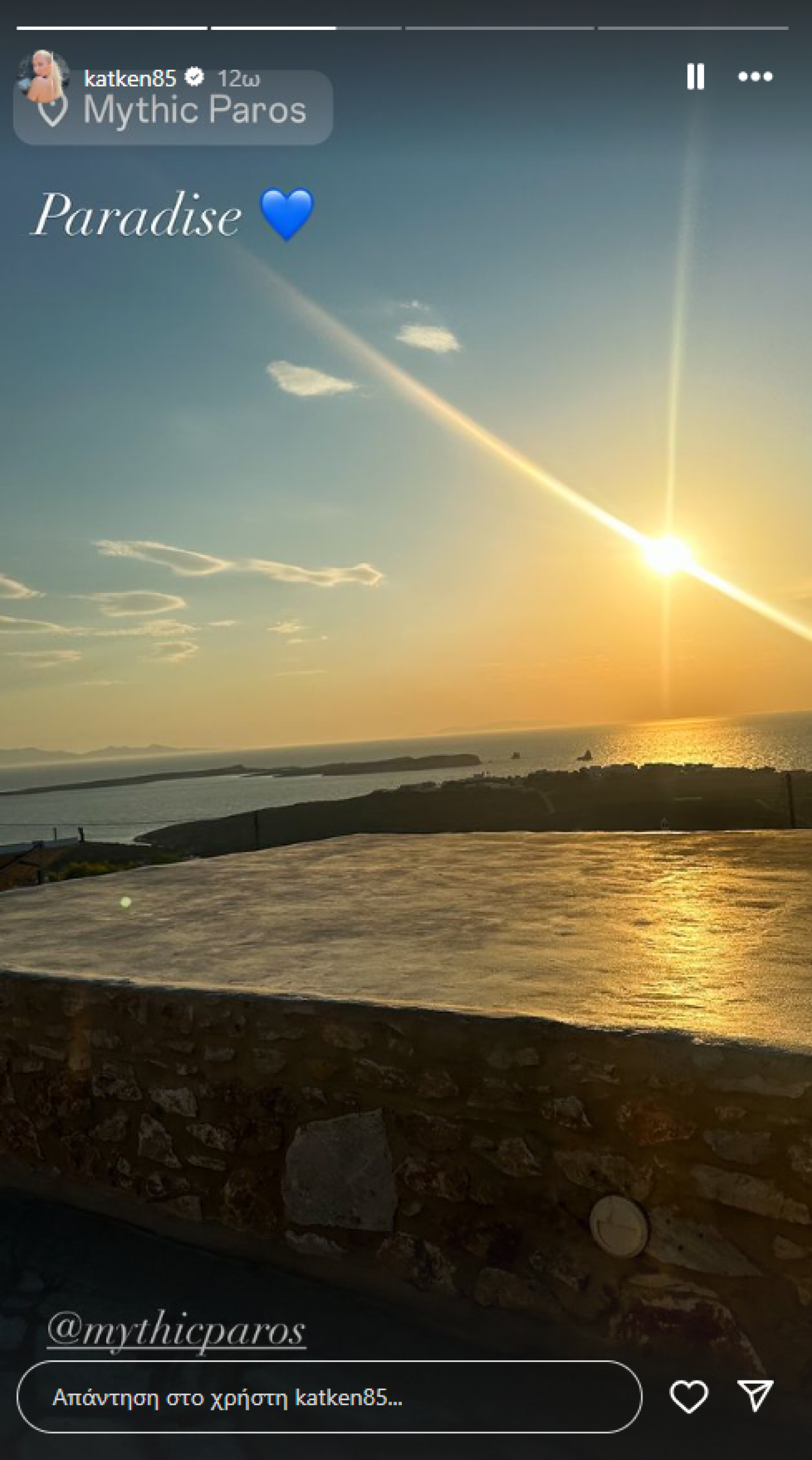 Την απόγευμα της Παρασκευής 12 Ιουλίου, η Κατερίνα Καινούργιου ανάρτησε νέες εικόνες από την εκπληκτική θέα που απολαμβάνει στο νησί, καθώς και μια selfie φωτογραφία της.