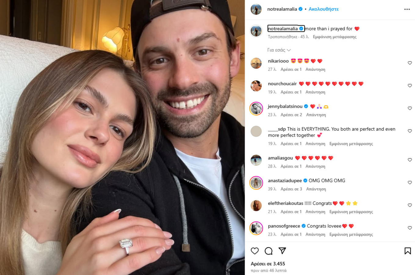 Η Αμαλία Κωστοπούλου δεν μπόρεσε να το κρατήσει περισσότερο κρυφό, καθώς ανακοίνωσε πως αρραβωνιάζεται τον αγαπημένο της σύντροφο, Τζέικ Μέντγουελ.