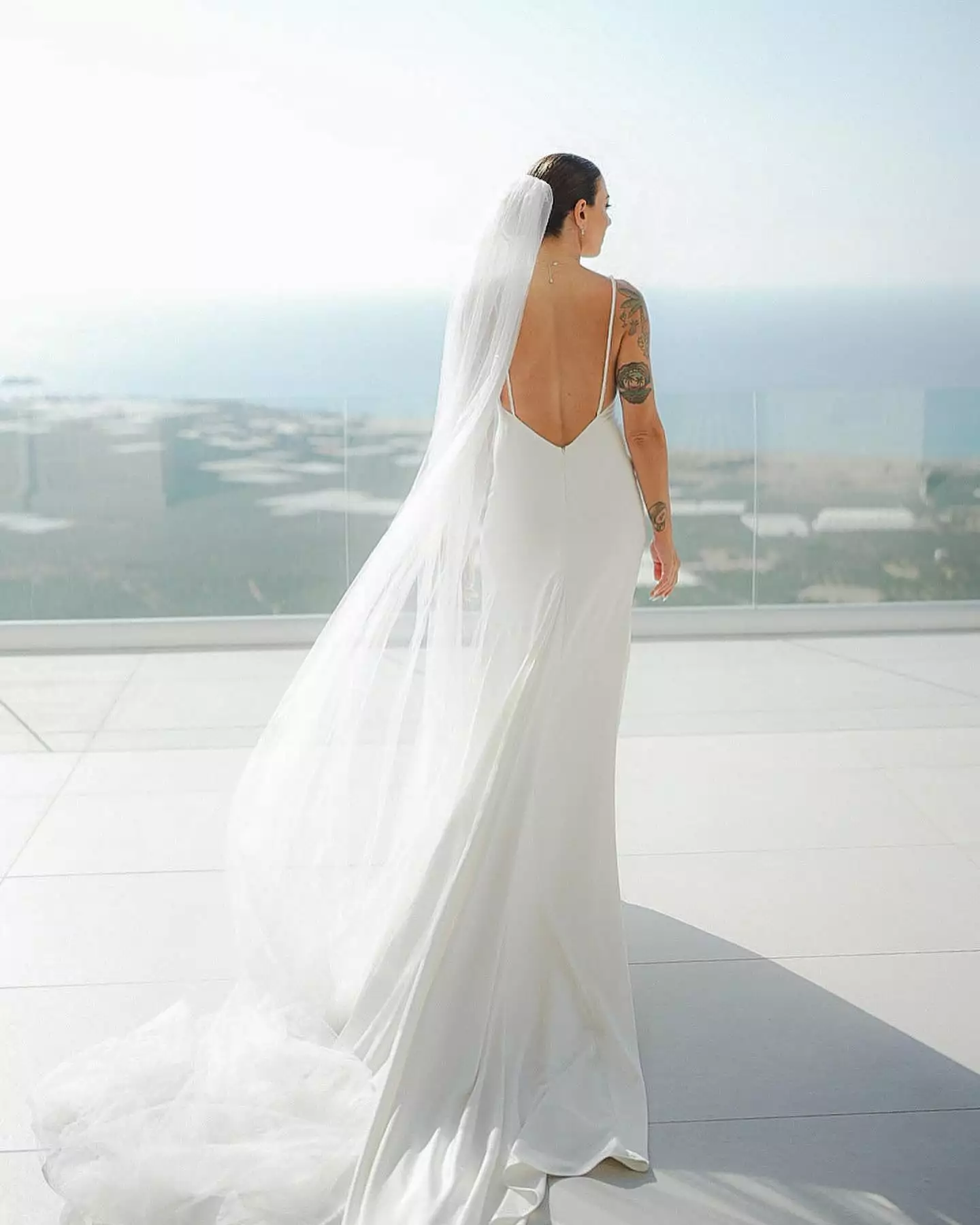 «Ωραίο. Πάρα πολύ ωραία φωτογραφία. Φανταστική. Θα την έκανα άλλο post εγώ» σχολίασε για τη φωτογραφία που βλέπουμε την Ευρυδίκη Βαλαβάνη να ποζάρει πλάτη μόνη της με το νυφικό της.