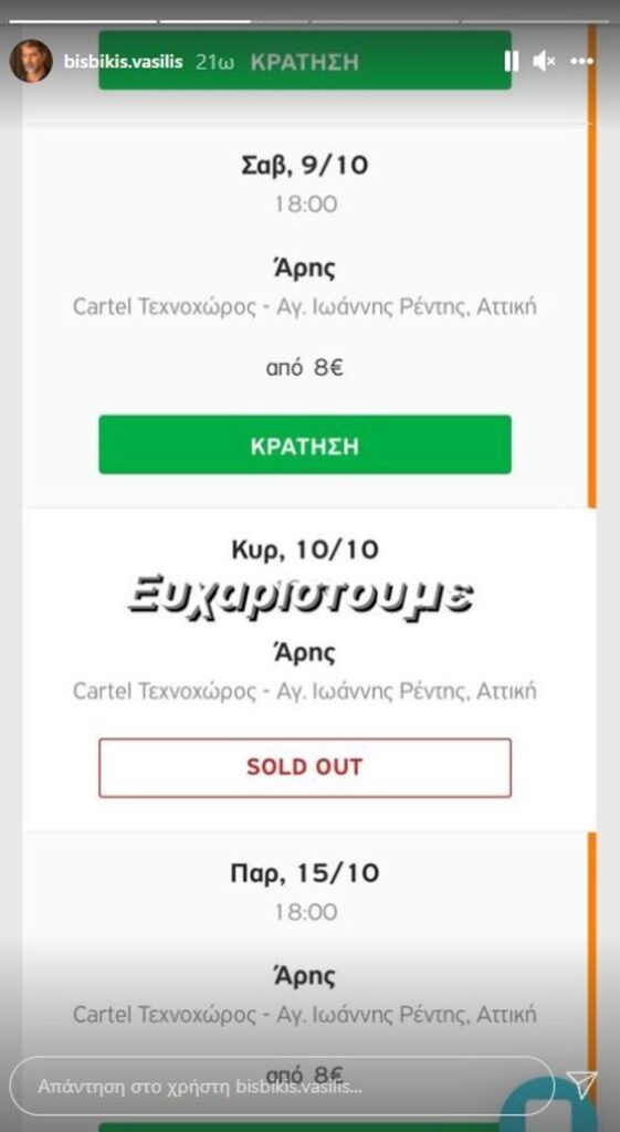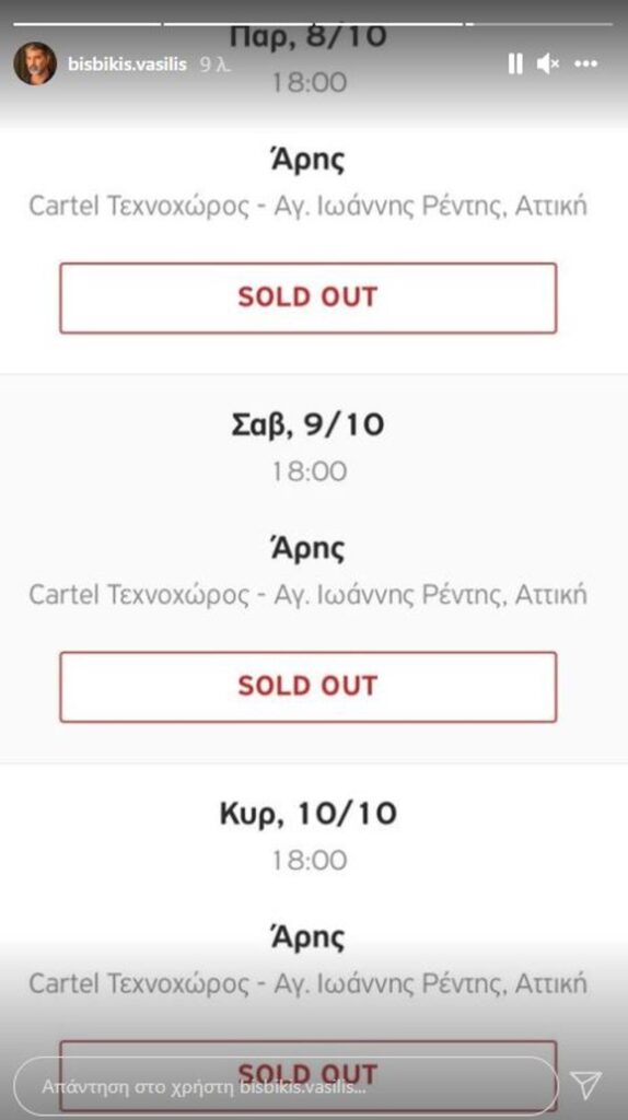 Στον προσωπικό του λογαριασμό στο Instagram έκανε αναρτήσεις που αφορούσαν τα επαγγελματικά του και συγκεκριμένα για τις παραστάσεις του.