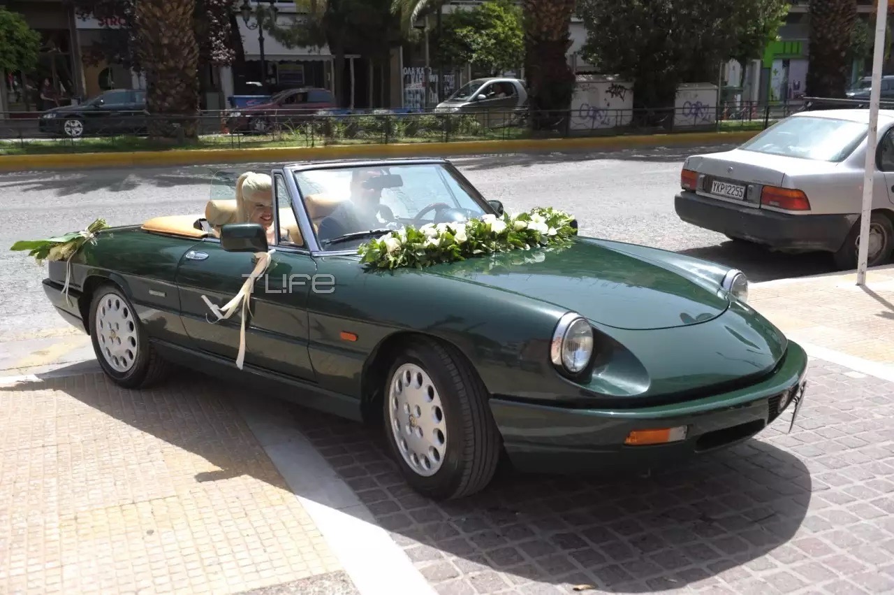 Η Βίκυ Χαντζή έφτασε στην εκκλησία με μία εντυπωσιακή Alfa Romeo Spider, μοντέλο του 1978, που οδηγούσε ο ιδιοκτήτης της και κουμπάρος του ζευγαριού Λάμπης Τσουκαλάς. Πρόεδρος του Ναυτικού Ομίλου Βόλου και γνωστός επιχειρηματίας στο χώρο των οπτικών και χονδρικού εμπορίου ένδυσης μεγάλων brands του εξωτερικού.