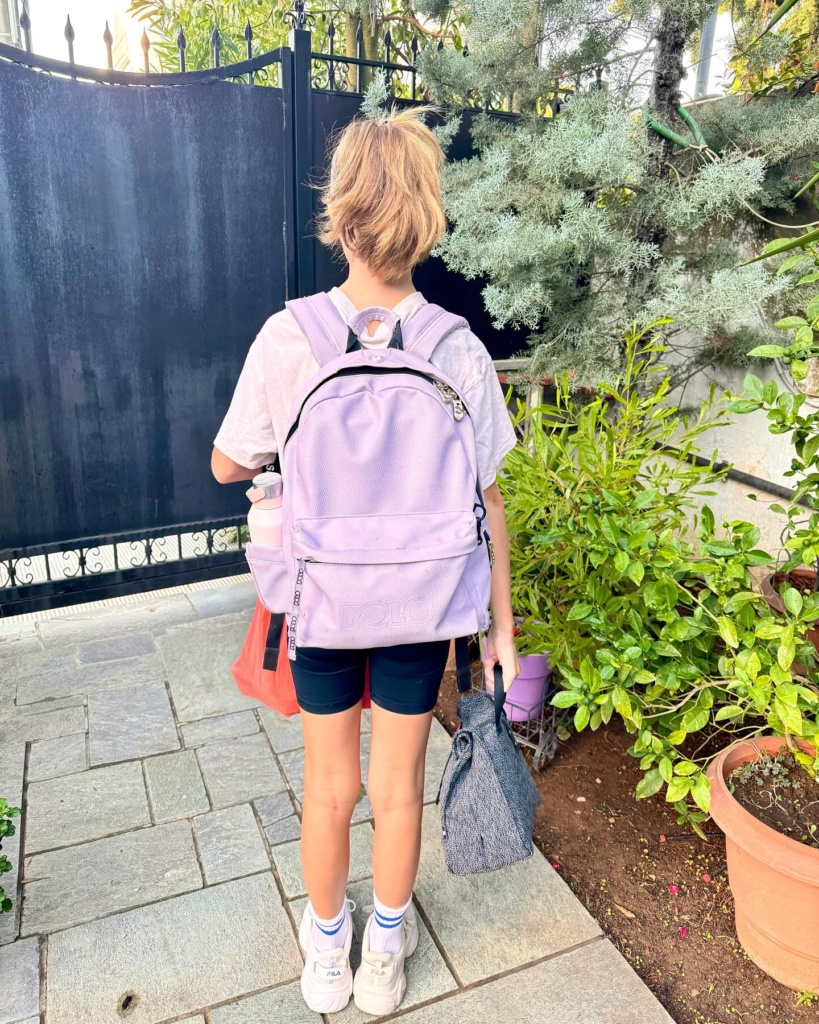 Η Βάσω Λασκαράκη πόσταρε στον προσωπικό της λογαριασμό στο Instagram δυο φωτογραφίες με την κόρη της, Εύα Τσιμιτσέλη η οποία ποζάρει με τη λιλά τσάντα της και σχολίασε η περήφανη μαμά: «Η ΣΤ´ τάξη μόλις ξεκίνησε ???? για μας εδώ! Καλή αρχή σε όλα τα παιδιά και στους εκπαιδευτικούς … καλή δύναμη και στους γονείς»