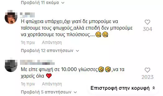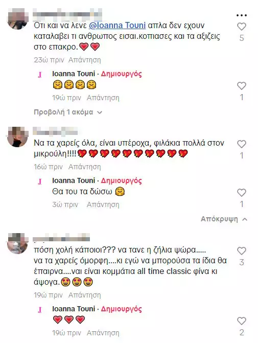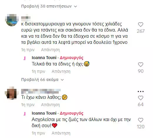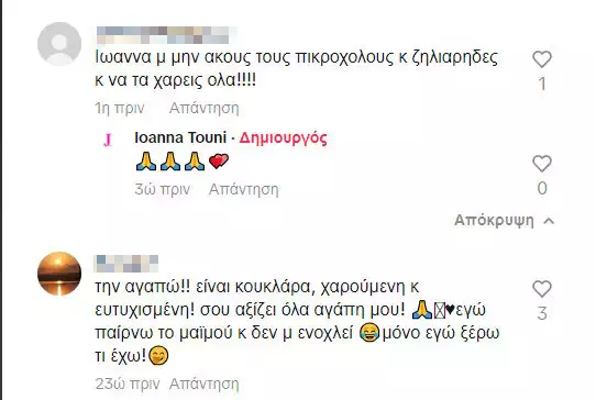 Δείτε μερικά από τα σχόλια κάτω από το βίντεο της Ιωάννας Τούνη στο TikTok: