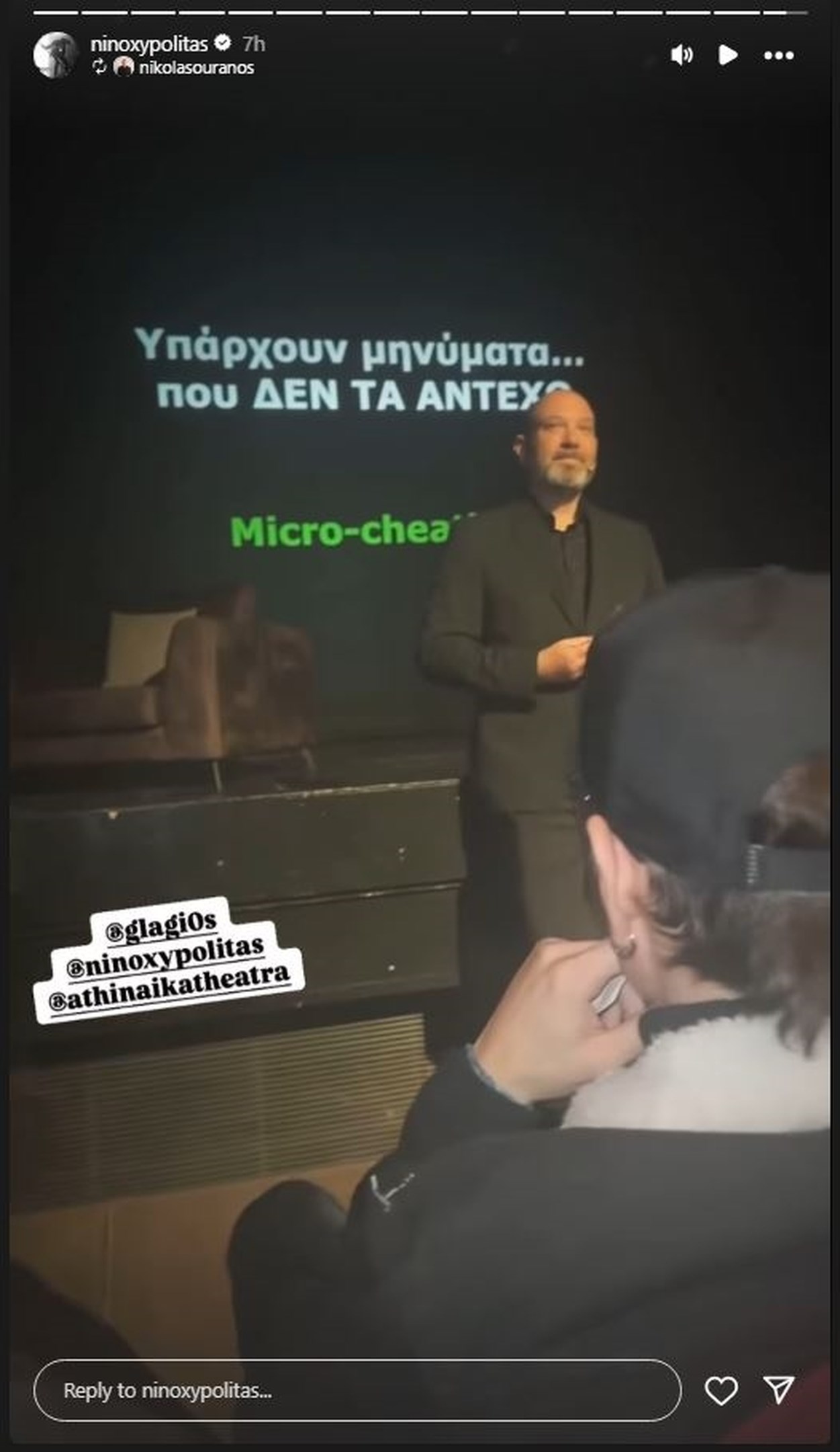 Ο διάσημος τραγουδιστής και συνθέτης Νίνο πραγματοποίησε μια σπάνια δημόσια εμφάνιση. Ο αγαπημένος καλλιτέχνης παρευρέθηκε στις διαδραστικές συναντήσεις του Δρ. Γιώργου Λάγιου με τίτλο “Μέσα στο μυαλό σου”, οι οποίες διεξήχθησαν στο θέατρο Αλίκη. Σε αυτές τις συναντήσεις προσφέρεται η δυνατότητα για μια “εξερευνητική περιπλάνηση” στο μυαλό ενός ζευγαριού, καθώς είναι ευρέως γνωστό ότι είναι πολύ εύκολο να χάσει κάποιος την ψυχραιμία του και, κατά συνέπεια, τον έλεγχο της ζωής του μέσα σε μια ερωτική σχέση.
