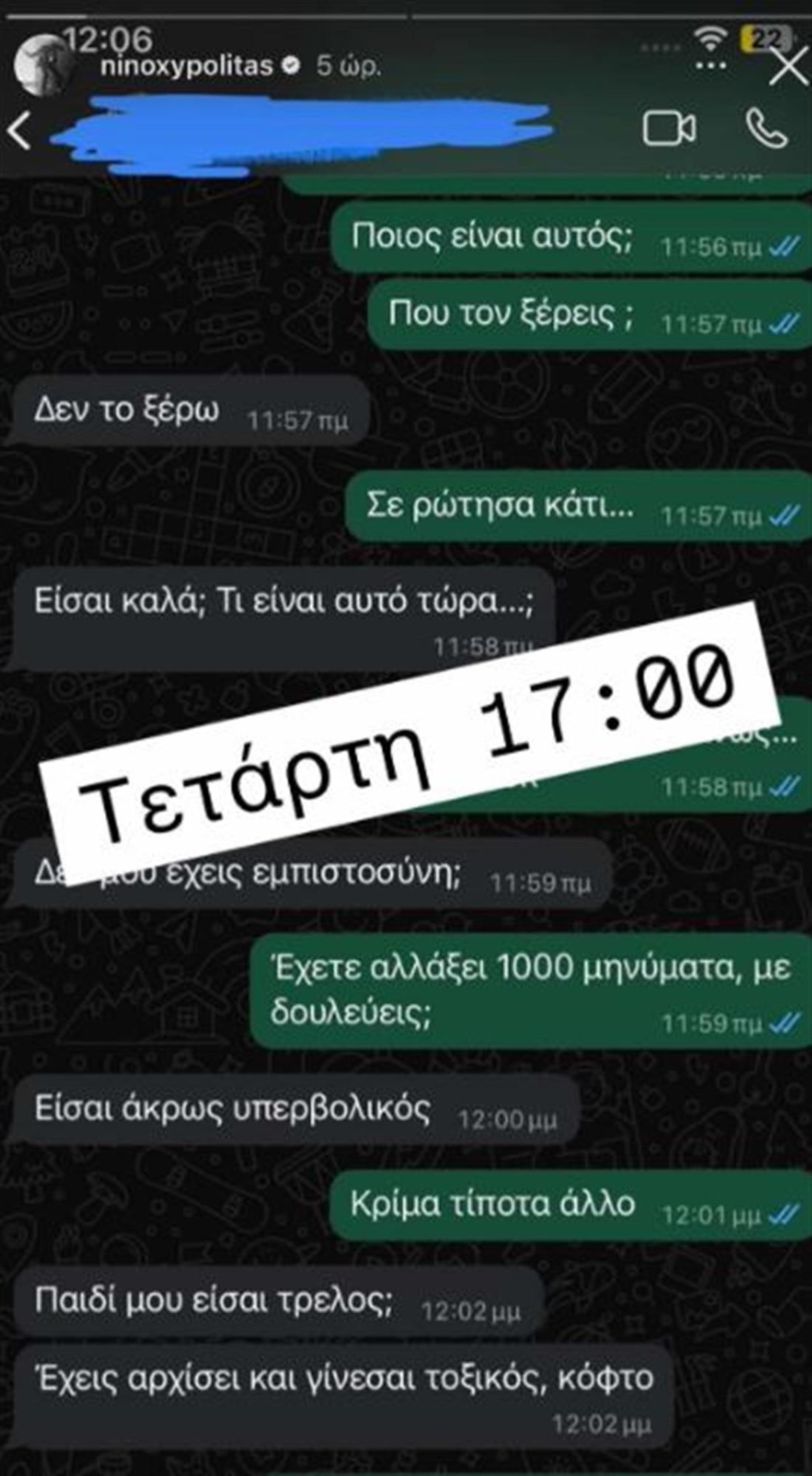 Ενώ για την προώθηση του νέου του τραγουδιού, ο Νίνο πριν λίγες ημέρες, δημοσίευσε ένα στιγμιότυπο από μία συνομιλία. “Ποιος είναι αυτός; Πού τον ξέρεις; Έχετε αλλάξει 1000 μηνύματα, με δουλεύεις;”, ρωτάει ενώ η άλλη πλευρά του απαντά: “Είσαι τρελός, τοξικός και άκρως υπερβολικός”. Όπως όλα δείχνουν ήταν μια αρκετά έξυπνη ανάρτηση για να γίνει viral το νέο του κομμάτι, με την κυκλοφορία του.