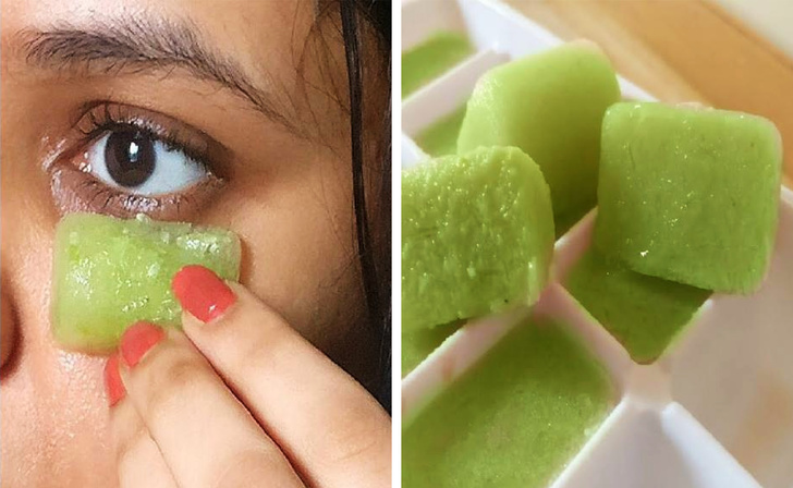 Πρέπει να το ξεφλουδίσετε, να το κόψετε σε κομμάτια, να το βάλετε στο μπλέντερ, να προσθέσετε μια κουταλιά της σούπας νερό και να τα αναμίξετε όλα. Βάλτε το μείγμα σε παγοθήκη και αφήστε το στον καταψύκτη για 4-5 ώρες. Στη συνέχεια, πάρτε ένα κατεψυγμένο κύβο και κάντε μασάζ το πρόσωπο, ειδικά την περιοχή κάτω από τα μάτια, αν θέλετε να απαλλαγείτε από μαύρους κύκλους ή πρήξιμο. Μπορείτε να δείτε τις οδηγίες στο βίντεο εδώ.
