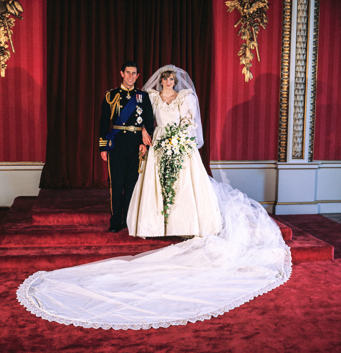 Το ζευγάρι των σχεδιαστών David και Elizabeth Emanuel τύλιξαν, έπειτα από 15 πρόβες, τη νύφη με μπόλικα μέτρα ταφτά, δαντέλες και 10.000 πέρλες, αλλά τίποτα δεν κατάφερε να σκεπάσει την ασυμβατότητα του ζευγαριού. Έπειτα ήρθαν και οι μοιραίες αναποδιές: πριν φύγει από το σπίτι, η νύφη έριξε το μισό μπουκάλι της κολόνιας της πάνω στο νυφικό. Έπειτα μπέρδεψε τη σειρά των ονομάτων του γαμπρού (τον αποκάλεσε «Φίλιπ Τσαρλς» αντί για «Τσαρλς Φίλιπ»). Στην ανταλλαγή όρκων παρέλειψε εντέχνως να παραδεχτεί ότι θα τον «υπακούει», αλλά «δεσμεύτηκε» να τον «αγαπά, να τον παρηγορεί, να τον τιμά, να του στέκεται στην ασθένεια και στην υγεία» (τόσο η Kέιτ Μίντλετον όσο και η Μέγκαν Μαρκλ ακολούθησαν το παράδειγμά της στις γαμήλιες τελετές τους).