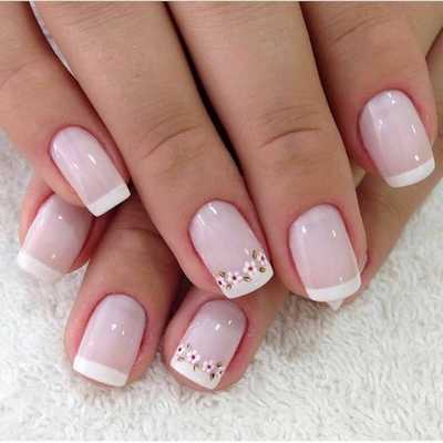 Μια όμορφη ιδέα για να απογειώσετε το απλό γαλλικό στα νύχια σας είναι τα μικροσκοπικά λουλούδια τόσο κατά μήκος της γραμμής, όσο και σε ένα από τα δάχτυλα. Αντίστοιχα εντυπωσιακό είναι και το french manicure με γραμμή από glitter.